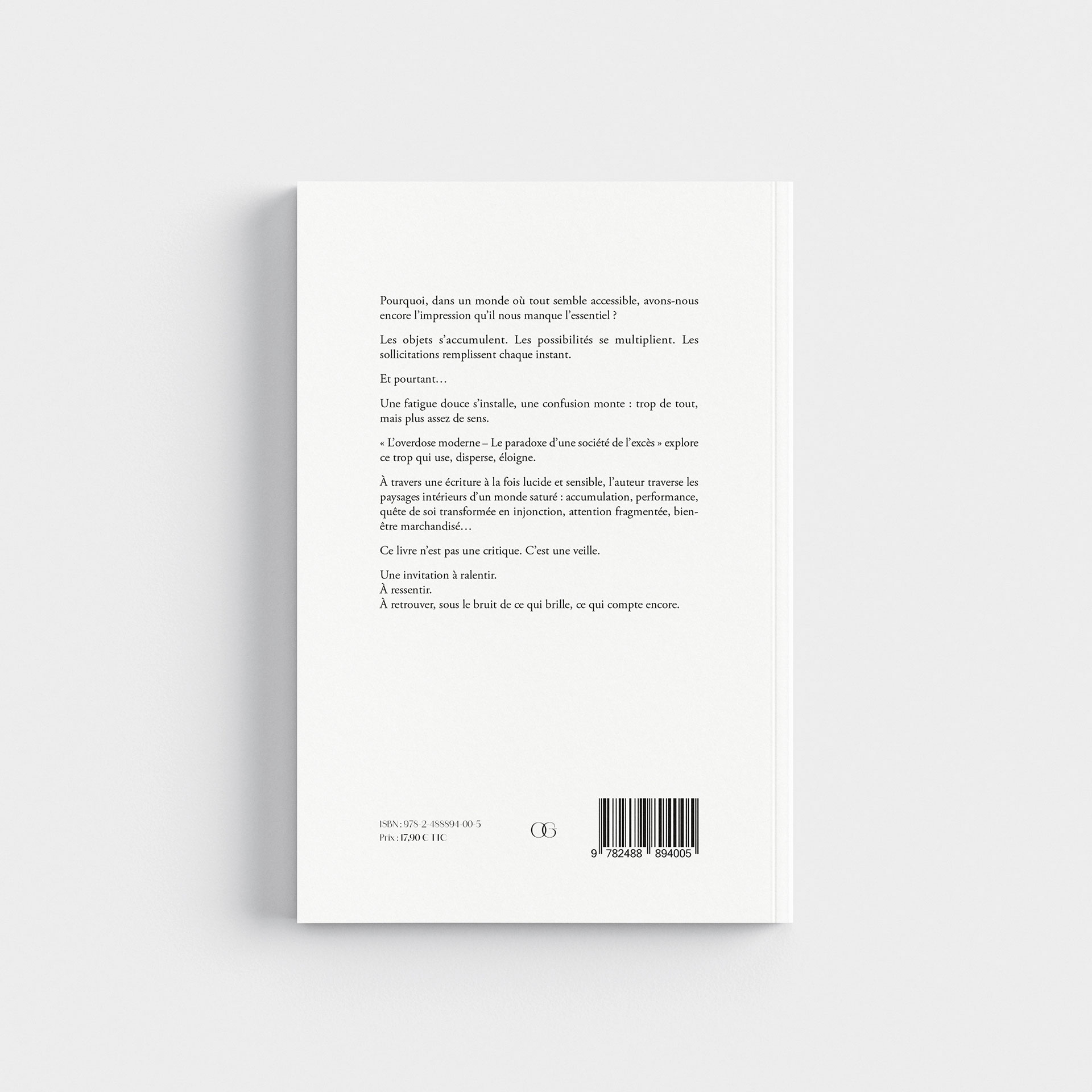 L’Overdose Moderne explore, avec une lucidité sensible, les effets invisibles d’un monde saturé. Dans une époque où tout semble accessible, l’essai interroge ce « trop » qui, sous les apparences du confort et du progrès, épuise notre attention, fragilise nos liens et dilue le sens.