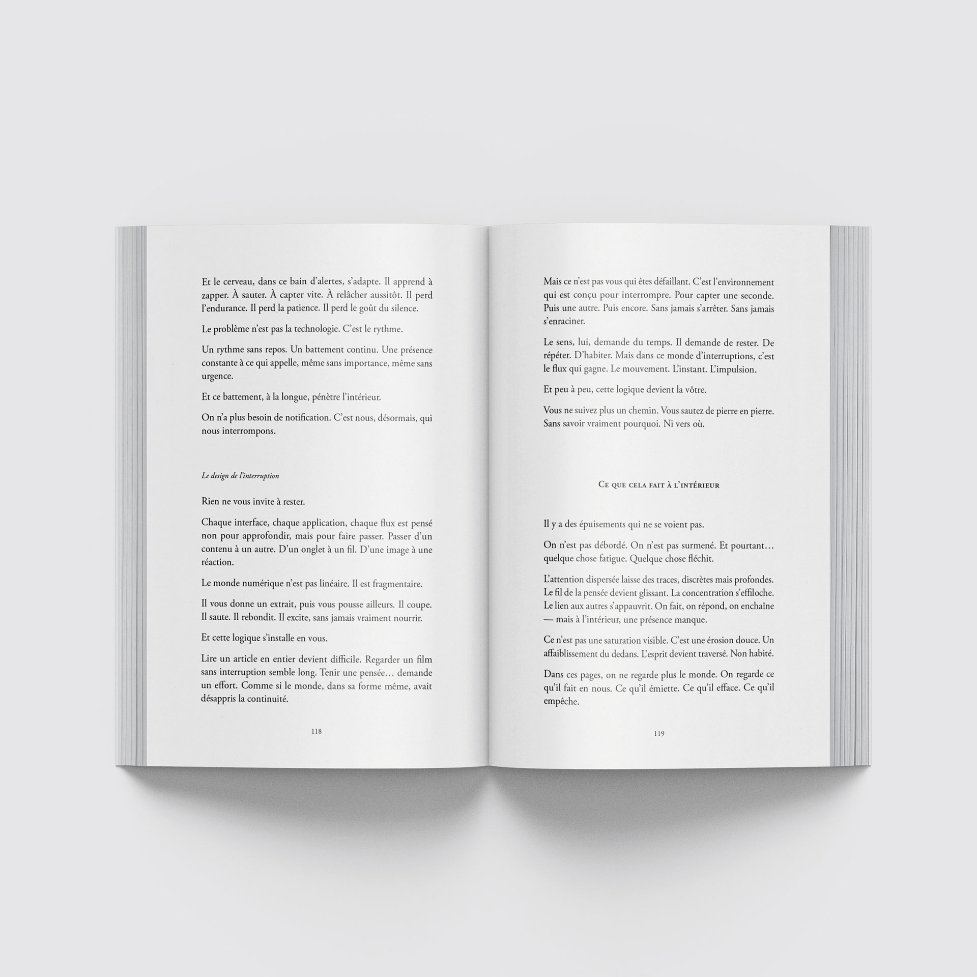 Entre regard critique et écriture poétique, ce premier livre propose une traversée en profondeur de notre temps : promesse de performance, vertige du choix, bien-être marchandisé, dispersion continue… Chaque chapitre est une halte, un éclairage, une respiration.